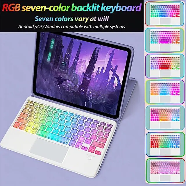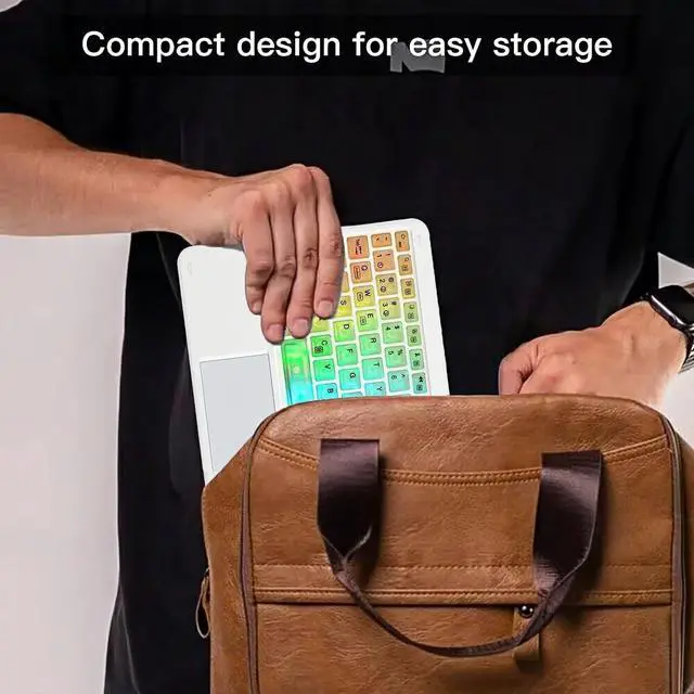 7-Color Backlit Ultra-Slim Transparent Bluetooth Keyboard with Built-in Touchpad and Mouse Portable Mini Rechargeable for Apple iPad iPhone Samsung Tablet iPhone Smartphone iOS Android Windows-White