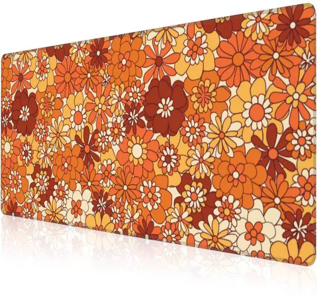 Mouse Pad, Large Retro Boho Hippie Flower Desk Mat, Extended Non-Slip Gaming Keyboard Mousepad Desk Pad, Thick Stitched Edges Waterproof Mouse Mat 31.5"x15.7" (Vintage Groovy Floral)
