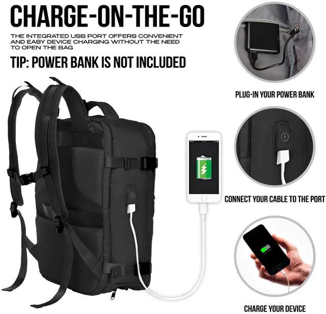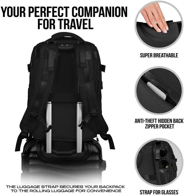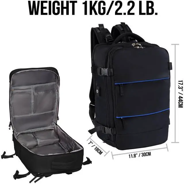 With durability at its core, this backpack offers the best value for your money, providing a long-lasting solution for all your travel and daily needs. Say goodbye to the stress of baggage check lines - our backpack meets the carry-on and personal item size requirements of major airlines, with dimensions under 18x14x8 inches. Enjoy seamless travel experiences as you effortlessly stow your backpack under your seat or in the overhead compartment. Stay organized on the go with multiple compartments tailored to accommodate clothes, laptops, and other personal items. Whether you're jet-setting across the globe or tackling your daily commute, everything you need will have its designated place, keeping you effortlessly organized and prepared for any adventure.