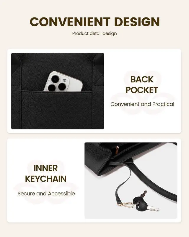 Its sturdy structure prevents collapsing, keeping your computer safe and secure during daily activities and commutes. ^^ Convenience Features for Quick AccessThe Work Shoulder Bag includes a key leash for quick retrieval of keys and a strategically placed back pocket for frequently used items like tissues and cards. This thoughtful design ensures that your essentials are always within easy reach, enhancing daily efficiency. ^^ Versatile Design Makes the Perfect GiftIt is ideal for work, business, meeting, traveling, walking, dating or casual outings, suitable for all occasions, can be used as a laptop bag, teacher bag, file tote, computer purse, shoulder bag, work handbag or beach bag.