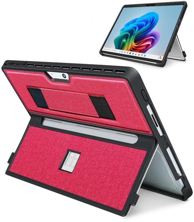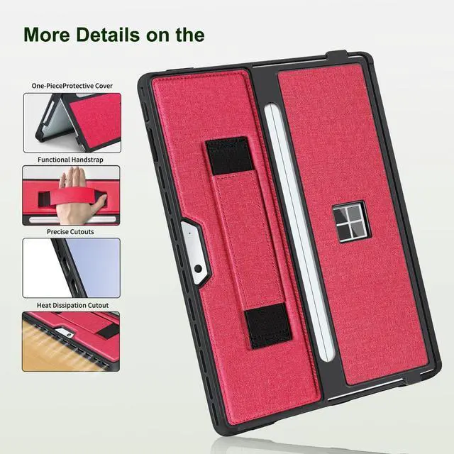 [Functional Handstrap] This cover is designed for Microsoft Surface Pro models 11, 10, 9, and 8. It features a strong and secure elastic hand strap tha