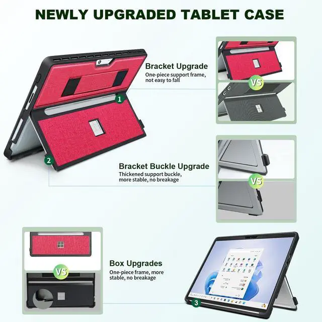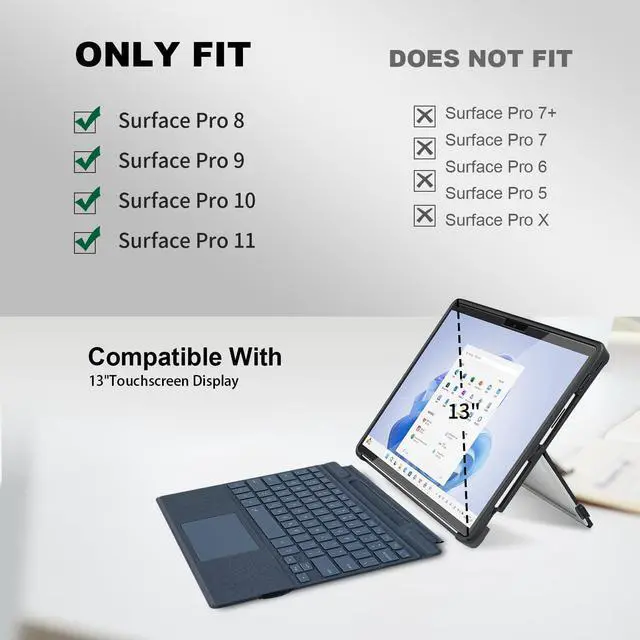[Compatibility]We've upgraded to an all-in-one case, ensuring that you don't have to worry about the back cover falling off. This case is designed for the Microsoft Surface Pro models 11, 10, 9, and 8, all with a 13-inch screen, and it features precise cutouts for easy access to all controls. Please make sure to check your tablet's model number before purchasing
