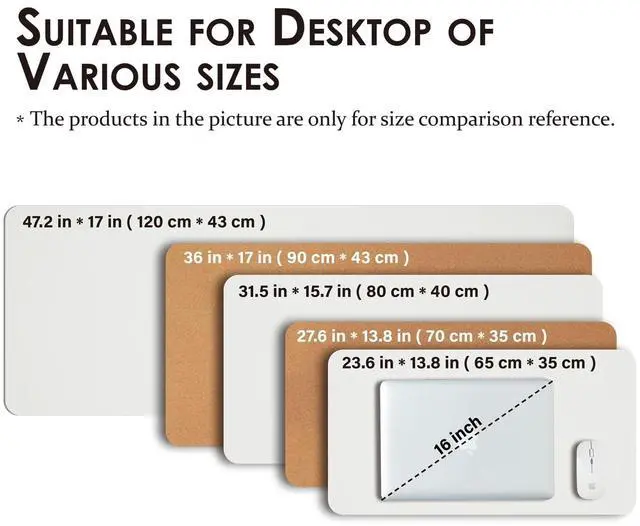 Versatile Sizes & Comfortable Touch: Choose from Multiple sizes - all with a 2mm thickness for comfort. Perfect for different settings, the compact sizes ( 23.6" x 13.8" ) for small desks, standard options ( 27.6" x 13.8", 31.5" x 15.7", 36"x17") for daily office use, and expanded layouts ( 47.2" x17") for spacious multi-device setups. ^^ Waterproof & Easy to