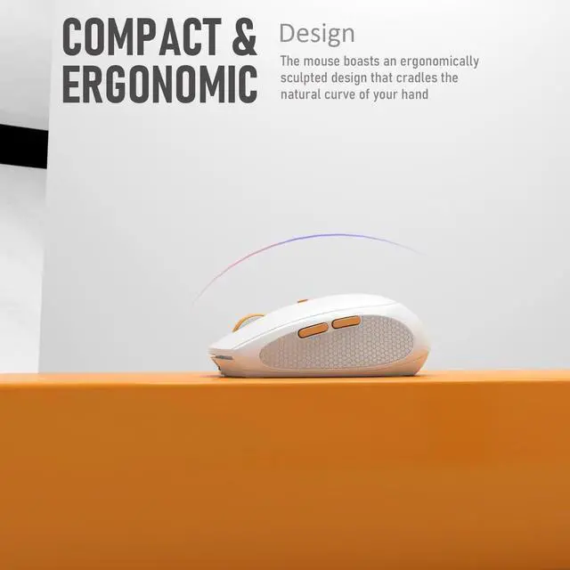 Bluetooth and 2.4G Dual-Mode Design & Wide CompatibleThis wireless mouse features a Bluetooth and 2.4G dual-mode design, allowing you to effortlessly switch between 2.4G and Bluetooth connections based on your needs. More flexibility for various uses and compatibility with a wide range of devices, including laptops, computers, PCs, Macs, Macbooks, Macbook Airs, notebooks, Chromebooks, iPads, and tablets ^^ Portable, Compact, and Ergonomic DesignPortable design makes it easy to store in bag for travel and remote work, making it your ideal travel mouse. Its compact size suits small to medium-sized hands, tight workspaces, and busy desktops.