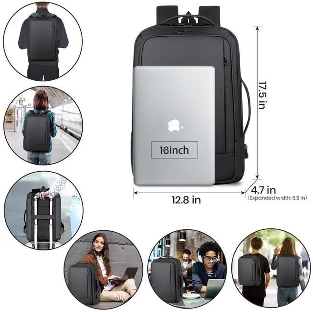 Spacious & Organized: Dedicated 16-Inch Laptop Compartment & Multiple Pockets This travel backpack features a well-padded, dedicated laptop sleeve that securely fits up to a 16-inch laptop, offering superior protection during transit. With intelligent interior layout and multiple hidden pockets, it delivers ample storage and keeps your travel essentials neatly organized. ^^ 2.