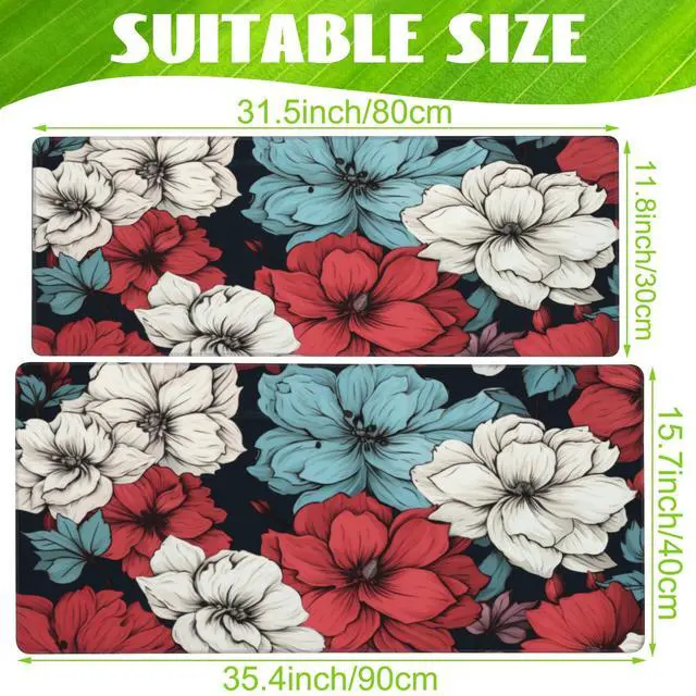 Eflxamz Desk Pad,Red White Blue Flowers Desk Mat,Manga Floral Large Gaming Mouse Pad for Desk,Extended Big Computer Keyboard Mouse Pad with Non-Slip Base and Stitched Edge,31.5"x11.8"