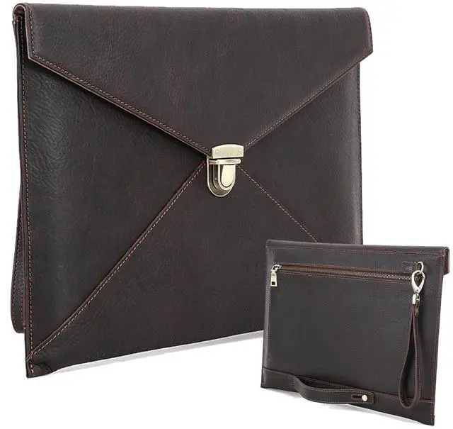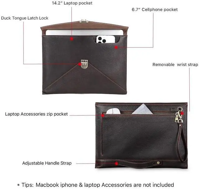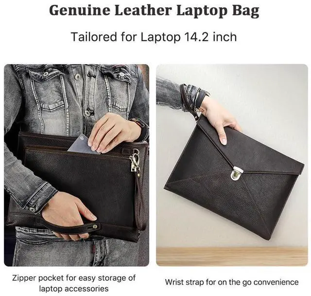 Travel Friendly: Mens leather laptop bag combines a vintage look with practicality. Its classic envelop shape with Lock and detachable wrist strap is prfect to protect your laptop from scratches or stealing and adds to style ^^