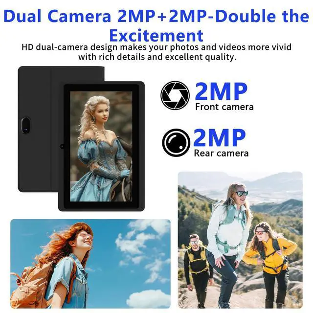 7 inch tablet 7" HD touch display, 180 degree viewing Angle, smooth browsing on the ultra-wide display, designed to make your content lifelike, bright color screen, bring you a more realistic viewing experience, bring you a clearer and brighter picture, ensure that you are more smooth when watching movies and playing games.