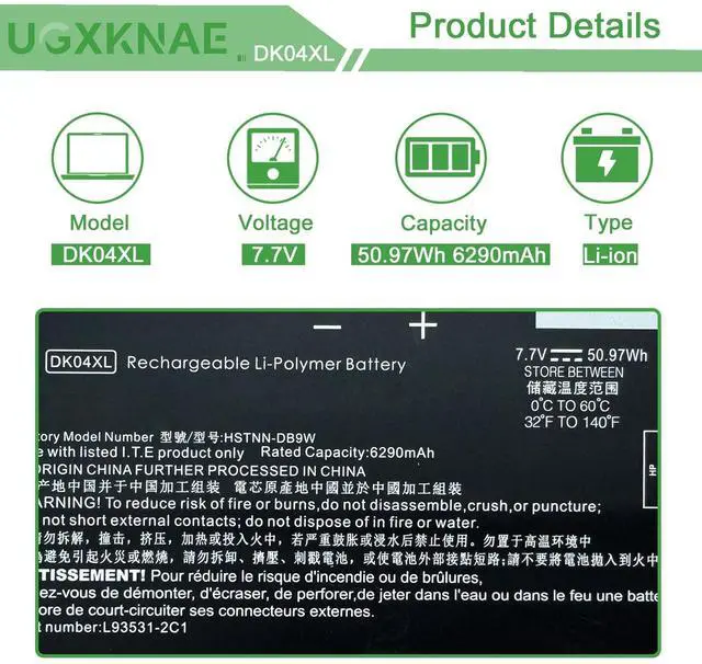 Replacement Part Number: DK04XL HSTNN-DB9W L93531-2C1 L93559-005 DK04050XL ^^