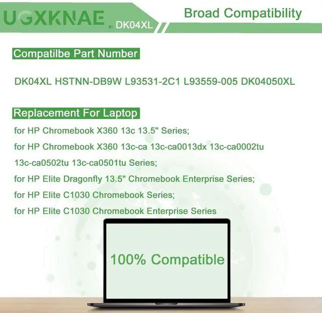 Compatible Laptop Models: Replacement for HP Chromebook X360 13c 13.5" Series; fit for HP Chromebook X360 13c-ca 13c-ca0013dx 13c-ca0002tu 13c-ca0502tu 13c-ca0501tu Series; fit for HP Elite Dragonfly 13.5" Chromebook Enterprise Series; fit for HP Elite C1030 Chromebook Series; fit for HP Elite C1030 Chromebook Enterprise Series ^^