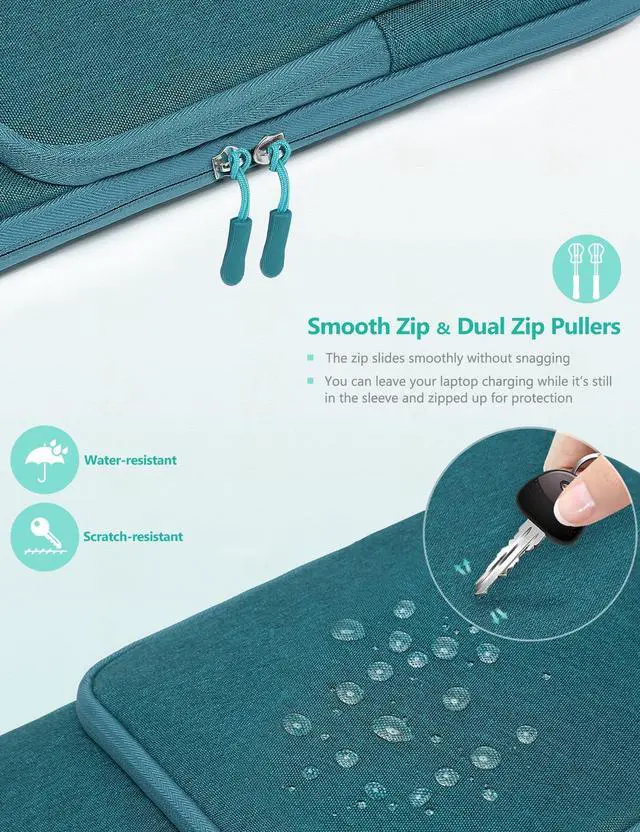 • Superior Multi-Protection: The outermost fabric is water-resistant and wear-resistant, the inner material is 8mm shockproof sponge and soft velvet, with an elasticated fixing strap to hold the laptop in place, perfectly protecting your laptop from spills/scratches/accidental drops. There is also a protective ridge around the perimeter to prevent your laptop from being scratched by zips