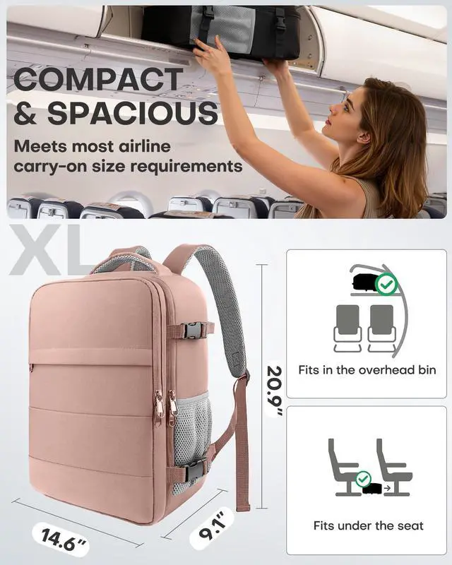 HOTOR Travel Backpack - Flight Approved Travel Bag for Men and Women, Carry on Luggage for 15.6" Laptop and Travel Essentials for Work, Business, Weekender, College 14.6"x9.1"x20.9" (Pink)