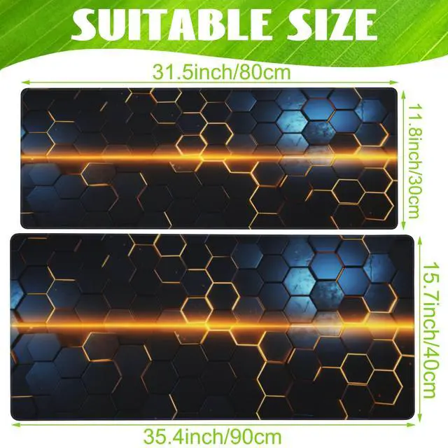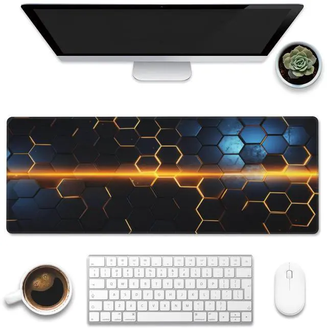 Eflxamz Large Gaming Mouse Pad for Desk,Golden Lines Honeycomb Technology Desk Mat,Honeycomb Technology Desk Pad,Extended Computer Keyboard Mouse Pad with Non-Slip Base and Stitched Edge,31.5"x11.8"