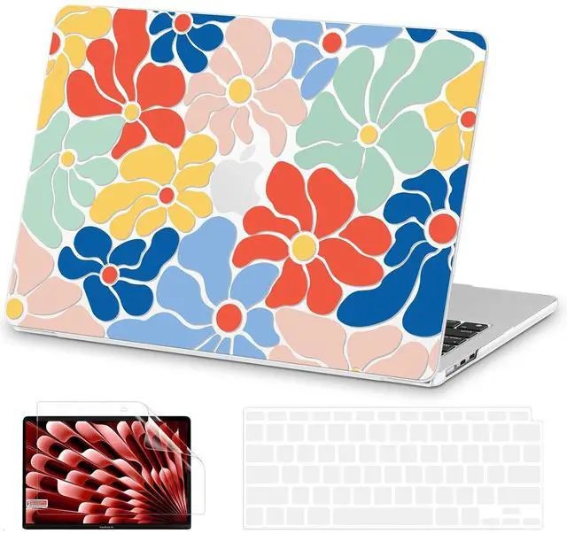 COMPATIBLE MODELSOnly Compatible with MacBook Air 15 inch 2025 2024 2023 released (Model: A3241/A3114/A2941) with M4/M3/M2 chip, Touch ID and Liquid Retina Display. NOT for MacBook Air 13.6 inch& 13.3 inch, please double check your laptop's model number "Axxxx" ^^ PREMIUM MATERIALDesigned for MacBook Air 15 inch case is made of high-quality hard plastic materials with good abrasion resistance for protecting your laptop from everyday scrapes, dirt, smudges and other damages. Easy to clean and make your laptop always looks like new ^^ UNIQUE PRINT DESIGNThe case for Mac Book Air 15 inch M4 M3 M2 is characterized by exquisite pattern which feeling of flowers in bloom, unique and eye-catching, make your case stand out of the crowd! The print is delicate and durable, and will never peel off or fad ^^ ACCESS TO ALL PORTSPrecise cutouts allow to access all functions and controls easily. Plug your charger, cable or headset without removing the case. Aside from regular port cut-outs, the bottom of the cover is designed with two rows of vent slots for proper ventilation ^^ 3 IN 1 COMBINATIONOne set fits for all needs.