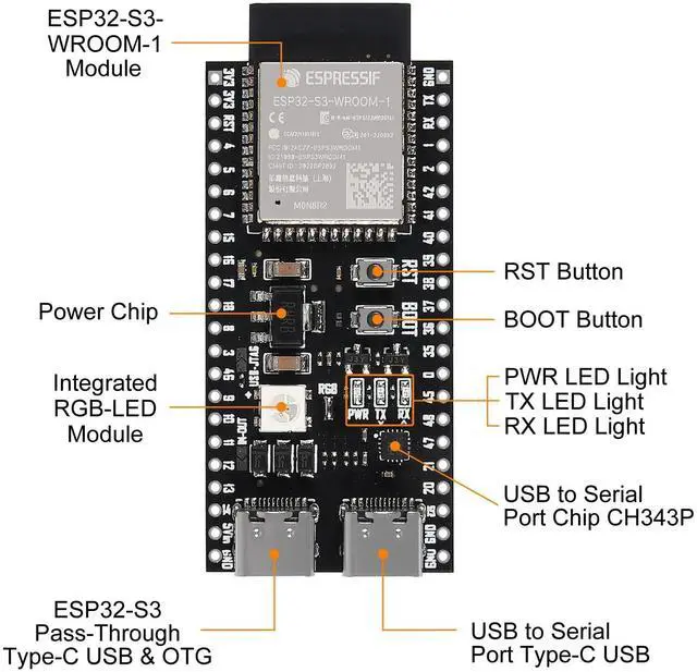 There are three mutually exclusive ways to provide power to the board: USB-to-UART Port and ESP32-S3 USB Port (either one or both), default power supply (recommended) 5V and G (GND) pins3V3 and G (GND) pinsHow to program