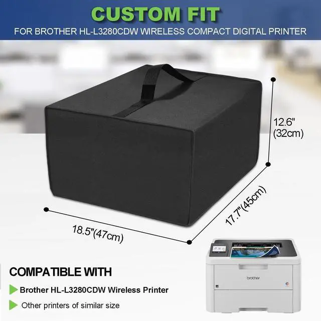 Compatible Models: Dust cover fits printers up to (DWH) 18.517. 712.6 in (474532cm). Printer cover perfectly for Brother HL-L3280CDW Wireless Compact Digital Color Printer and other similarly sized appliances.