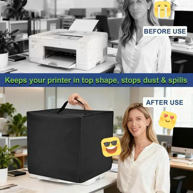 ^^ Printer Protective Cover: This printer storage cover shield keeps your printer safe from dust, pet hair, moisture, oil, and accidental spills (like coffee, water or milk). It blocks particles that could damage sensitive electronic parts, helping extend your printers lifespan.