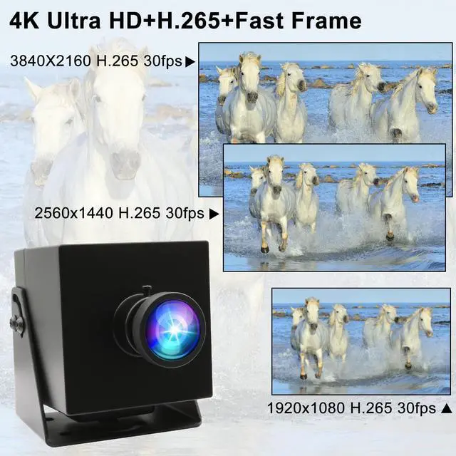 ^^ With wide angle 1.56 mm fisheye lens, HFOV about 200degree. ^^ UVC Compliant Plug&Play, Just connect the camera to PC computer, laptop, Android device or Raspberry Pi with the USB cable without extra drivers to be installed or with HDMI cable to motitor for display directly ^^ High speed USB 2.0 interface camera module, Low power consumption, small outline and thin profile for embedded application. ^^ This is an industrial grade camera with a metal housing and base that can be firmly attached for permanent mounting, the camera is full 4K resolution at 30fps, and has both USB and HDMI outputs and both can be used concurrently.