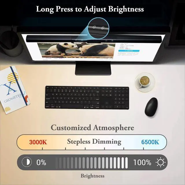 Color Temp Settings: Elevate your lighting ambiance with the iQuincy Monitor Light Bara sleek, customizable lighting solution designed for precision and ease. Featuring seamless stepless dimming and color temperature adjustment from warm 3000K to cool 6000K, it empowers you to create a personalized visual environment tailored to any activity. Effortlessly fine-tune your light with intuitive long-press controls, whether you're gaming, studying, or any computer work. ^^