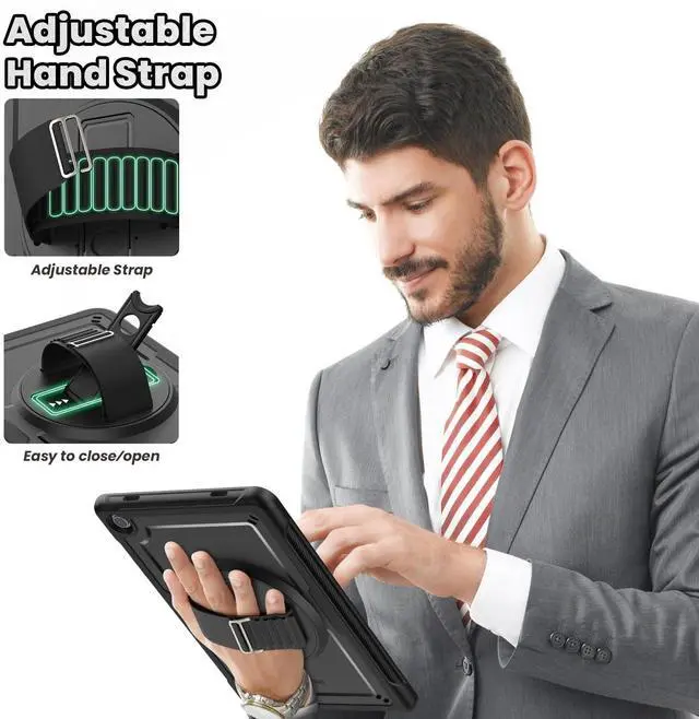 Shoulder Strap: With the adjustable handle on the back, you can hold your tablet securely with single hand, and let your other hand free do other things; the adjustable and removable shoulder strap is convenient to carry the tablet.