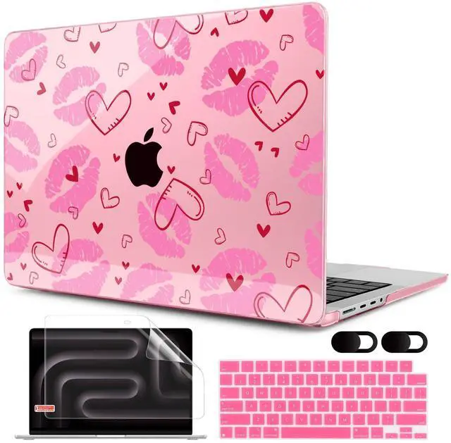 MEEgoodo Case for MacBook Pro 14 inch (M5/M4/M3/M2/M1) 2025 2024 2023 2021, Case Fit Model A3434/A3112/A3401/A3185/A2918/A2992/A2779/A2442 Pro/Max, Cute Kiss & Love