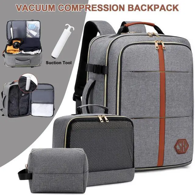 Flight-Approved Design: Externally measures 18.5 x 12.6 x 7.5 (HxWxD), meeting most airline carry on requirements. This vacuum compression travel backpack carry on flight approved bag opens 180 for easy airport security checks an ideal travel vacuum backpack ^^