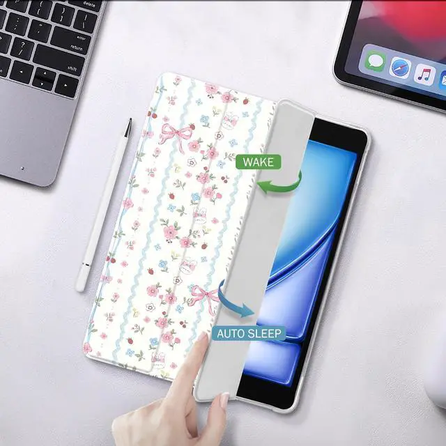^^ Auto Wake/Sleep: This case features a unique magnetic clasp that automatically wakes your iPad when opened and puts the device to sleep when closed. This helps reduce battery loss and extend the standby time.