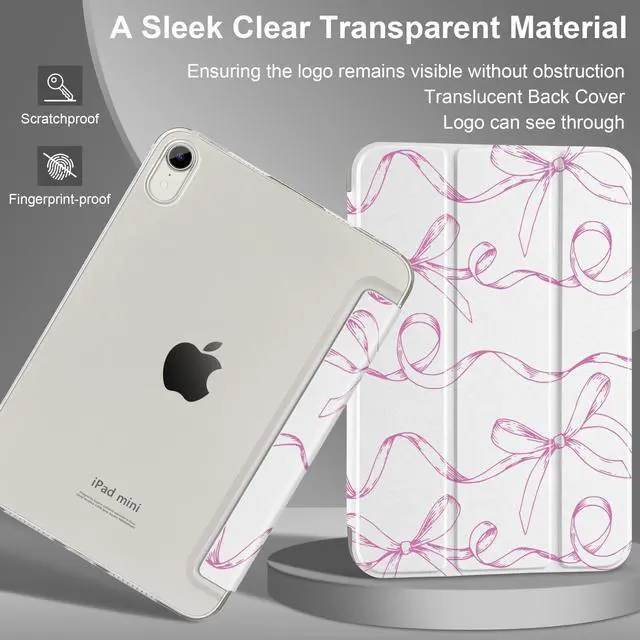 • The translucent frosted back cover lets you see the Apple icon in your favorite color, while the front cover combines a premium PU exterior, microfiber lining, and soft TPU for excellent scratch, impact, and drop protection to ensure long-lasting protection for iPad mini 7th/6th Gen
