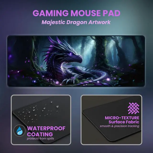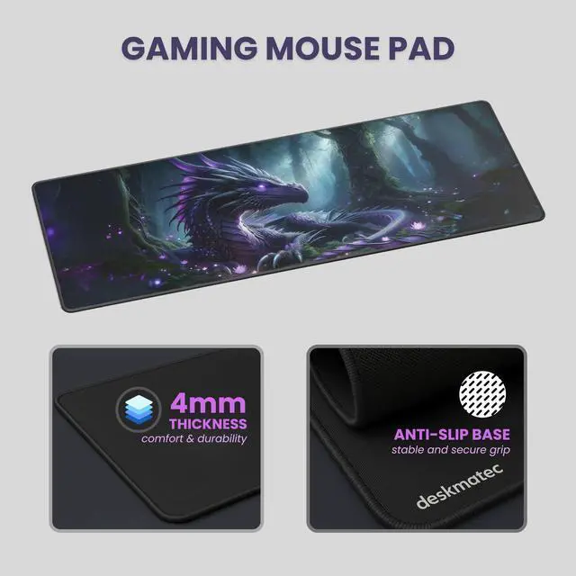 Design: Majestic dragon in a glowing, enchanted forest settingElevate Your Game. Embrace the Magic. The DESKMATEC Nightbloom Dragon Gaming Mouse Pad is more than just a gaming accessoryits a gateway to a world of fantasy, power, and enchantment. Perfect for gamers, collectors, and fantasy lovers, this mouse pad is your ultimate tool for conquering virtual worlds in style.