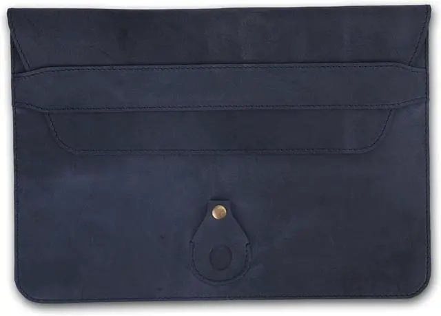 Thoughtfully designed with a built-in pen loop and tag holder, this leather Mac and laptop cover helps keep small essentials organized. The natural blue finish develops a beautiful patina over time, reflecting authentic craftsmanship and individuality. Lightweight yet durable, this leather laptop envelope case provides stylish protection wherever you go. Whether for the office, coffee shop, or commute, its the ideal universal laptop sleeve for anyone who values form and function.