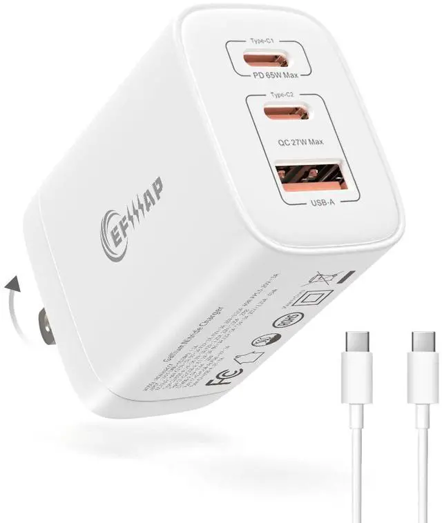^^ Wide CompatibilityWorks with 98% of electronicssupports PD 3.0 /QC/PPS, and other fast-charge protocols for phones, tablets, laptops, and accessories. ^^ What You GetIncludes EFIIIAP 65W Charger 1PC (GaN III Series), 100w USB-C fast charging cable(1m, With E-marker chip), welcome guide, 24-month warranty, and friendly customer support. Upgrade your charging experience today!