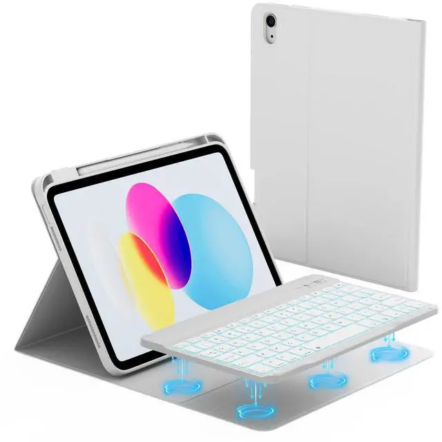 KTGGHG for iPad 11th/10th Generation Case with Keyboard - 7 Colors Backlit Wireless Detachable Folio Keyboard Cover with Pencil Holder for iPad 11-inch A16 2025/10th Gen 10.9" 2022, Gray