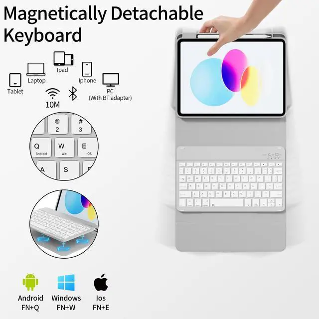 Magnetically Detachable Keyboard: This for iPad A(16) case with keyboard is magnetic so it can be easily repositioned or removed from the case. Equipped with useful shortcut keys and compatible with IOS, Windows, and Android systems, provide you with ultimate convenience