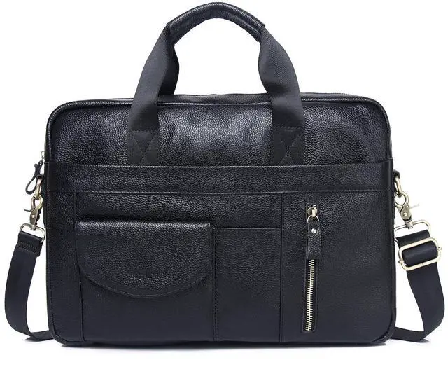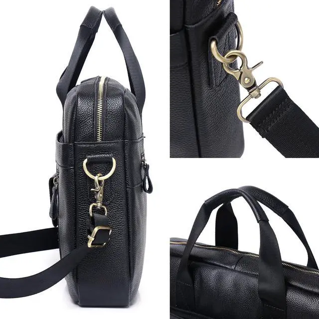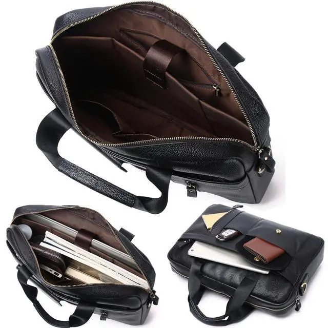 Durable Material: Durable Business Leather Briefcase Messenger Bag: This business shoulder bag is made of cowhide genuine leather, top-quality zippers, zipper adjustable space, fabric lining, zip closure, leather and excellent workmanship, contemporary type design, vintage, fashion and luxury, which shows your outstanding temperament when business outdoor travel. ^^ Perfect 15.6 inch