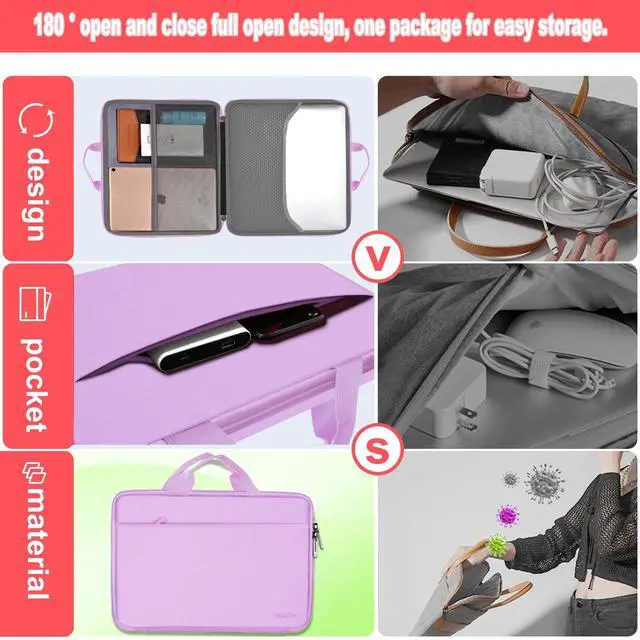 Carry: The laptop briefcase with handles and classic slim design, only 2 cm thick, easy to hand carry or slide into another messenger bag or backpacks ^^ Best for