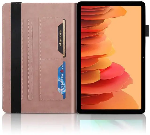 Product description: Durable and high-quality artificial leather, soft inner fiber and elastic band of the shell can strengthen the protection of the tablet and prevent your tablet from damage and scratches. Samsung Galaxy Tab A7 2022/2020 case with a stand function allows you to safely adjust the Galaxy Tab A7 to multiple angles, freeing your hands for entertainment or work; The card pocket can conveniently store credit cards, business cards, bills, etc. during travel. The pen holder perfectly fits the touch screen pen, which is easy to carry around. Perfect cutting allows the use of all functions and buttons, including ports, speakers, etc. Can be easily inserted or removed.