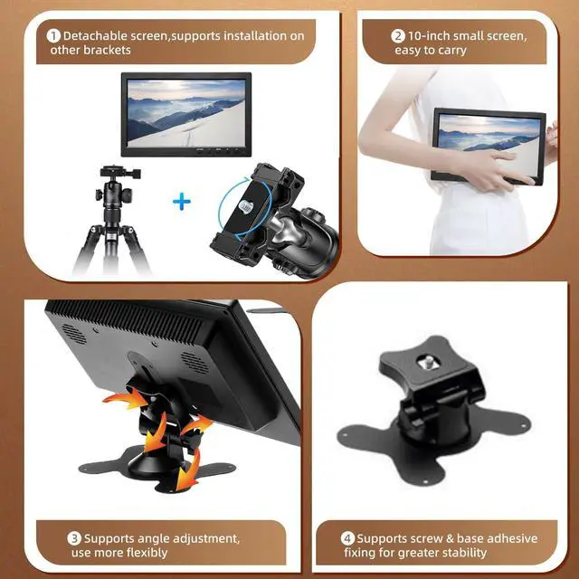 Performance]: This 10.1 -inch monitor features a 16:9 aspect ratio and 1024x600 resolution, compatible with both PAL and NTSC video systems. It delivers crisp, stable images with excellent color accuracy, plus manual controls for adjusting brightness and contrast to your preference ^^ [Multi-Interface