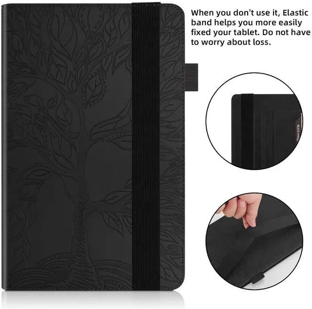 ^^ Special design: Two built-in pockets are designed to store credit cards, business cards, etc.; the pencil holder can perfectly hold the touch screen pen; the elastic band strengthens the closure of the tablet case to improve safety.