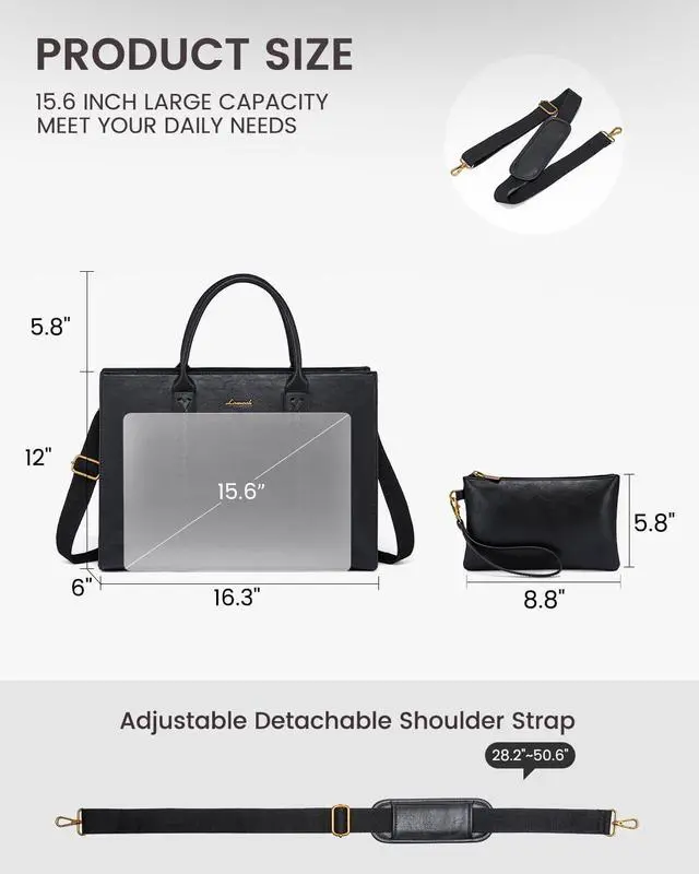 Perfect Size Laptop Bag: Measuring 16.3" x 6" x 12", this multi-pocket leather tote bag boasts ample space with a thick padded laptop compartment (For 13"/14"/15"/ 15.6" laptops), tablet slot, and various pockets for great organization, ensuring a secure and organized commute, daily use or business trip. Designed for the professional modern woman, the leather laptop bag for women marries elegance with functionality. ^^