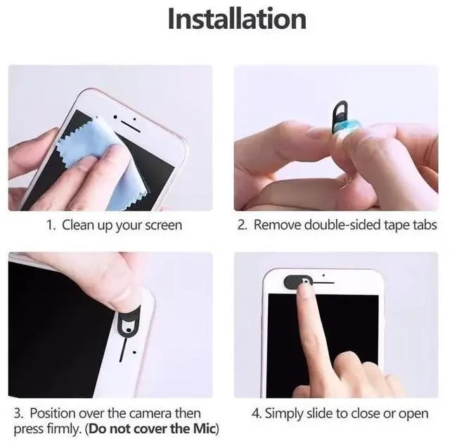 Safeguard your privacy with our ultra-thin 10-pack webcam covers. Perfect for laptops, tablets, smartphones, desktop monitors, and other electronic devices, these covers feature a 0.027 -inch slim profile that allows laptops to close fully without obstruction. Made from premium aluminum alloy, each cover provides smooth sliding action and durable, long-lasting use. The easy peel-and-stick adhesive ensures quick, secure installation without tools. Ideal for work, online meetings, virtual classes, and personal privacy protect all your devices effortlessly.