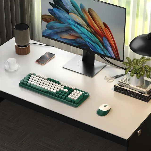 Elevate Your Workspace: Step into a perfect blend of nostalgia and modern sophistication. Our typewriter-inspired keyboard features a striking dual-tone color block design that adds a touch of vintage charm to any desk. Paired with a sleek, matching mouse, this combo transforms your standard setup into a stylish and productive retro haven. ^^ Unmatched Performance with Seamless