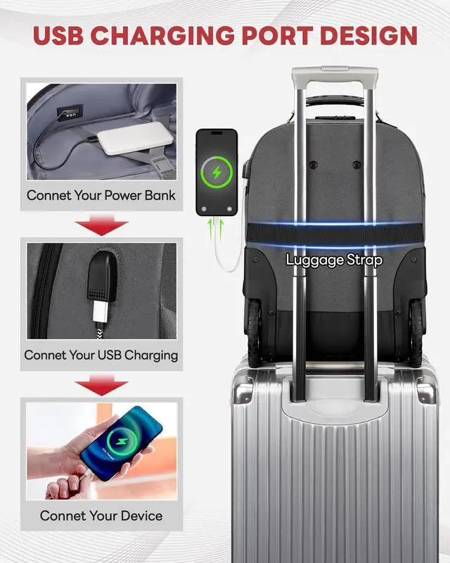 Gifts Worthy: Rolling bag for adults men women serves multiple purposes-ideal as a work commute bag, rolling teacher bag, backpack with wheels, or daily travel bag. Perfect for teachers, office workers, weekenders, overnighters and travellers. Makes excellent gifts for any occasion, including Birthday, Mother's Day, Father Day and holiday gifts, suitable for your husband, boyfriend, father, friends, colleagues, college, etc