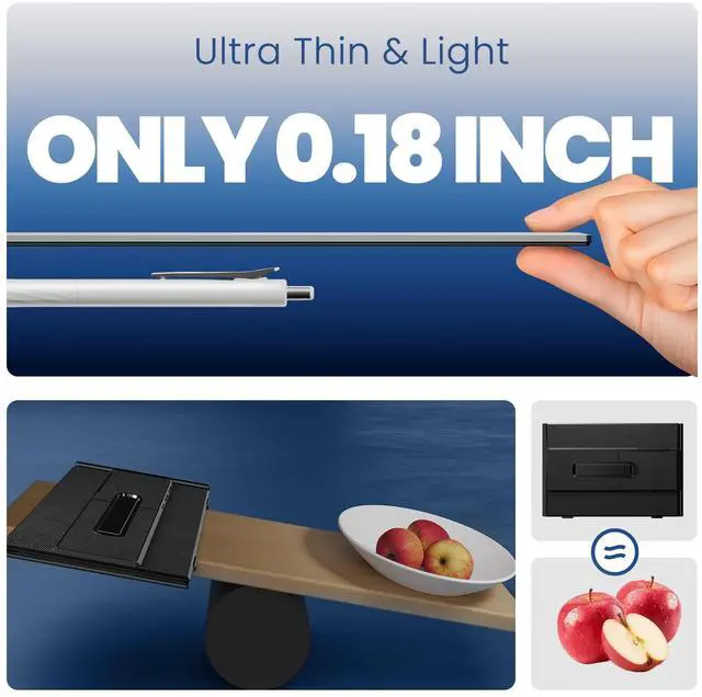 The laptop screen extender supports extended, mirrored, duplicate, portrait, and landscape modes. It can perform multiple tasks at the same time, greatly improving efficiency (up to 200%), and is a rare productivity tool. The portable laptop monitor is perfectly used by office worker, student, musician, entrepreneur, stock trader, programmer, engineer, blogger, writer, etc. ^^ Upgraded Design & MaterialThe laptop screen extender monitor portable features a completely new design in every detail, including the use of aviation-grade aluminum alloy for the screen back cover, which provides heat dissipation, scratch resistance, and a longer lifespan.