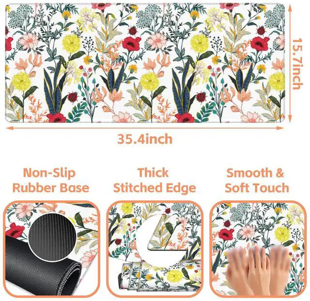 NIYLYNSYN Mouse Pad Large Summer Flower Non-Slip Gaming Desk Mat with Stitched Edge Laptop Keyboard Desk Pad for Work Home Gaming (35.4 x 15.7 Inches)
