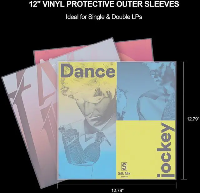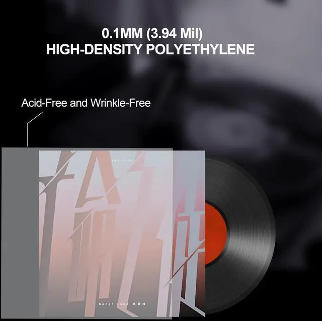 Thick Material- Vinyl record outer sleeves for vinyl records are made of premium 3.94 Mil High-Density Polyethylene, superior durability to protect vinyl record sleeves. They effectively resist dust, and scratches, making them suitable for long-term storage and display of cherished vinyl records. ^^ Perfect Storage Size- The vinyl sleeves outer 12.79 inch x 12.79 inch square design, perfect fit for all 12" vinyl records. Provide the perfect balance between protection without adding unnecessary bulk. Is suitable for single and double LPs, you can slide in and out of the record sleeve easily.