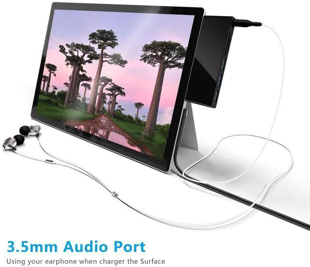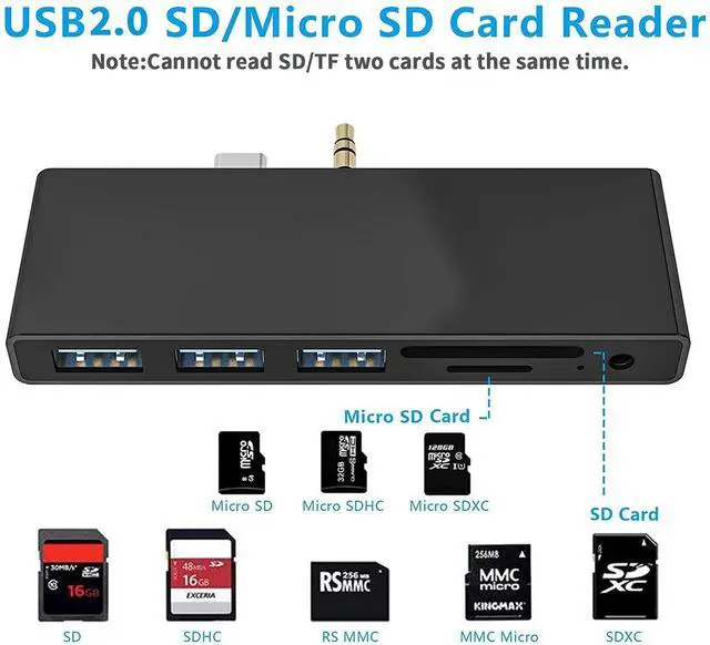 *Note: SD card slot and card slot can't be used at the same time. ^^ Surface Go / Surface Go 2 /Surface Go 3 Adapter with 1xSuper Speed USB 3.0 +2xUSB 2.0 PortsUSB 3.0 + 2 USB 2.0 Ports allow you to connect keyboard, mouse, usb drive, usb hard disks, etc to Surface Go, USB 3.0 Up to 5Gbps data transmission speed, down compatible with USB 2.0 and below. ^^ Surface Go / Surface Go 2 /Surface Go 3 Hub with Audio and Mic 2 in 1 Port Audio and Mic 2 in 1 Port makes listening, talking, or recording a breeze. Plug in your earphone and listen to crystal clear music and sounds from your Surface Go. ^^ Plug and Play &Hot SwappingNo driver installation is required. Matches excellently with your Microsoft Surface Go. 24 month warranty and no worry on return or refund.
