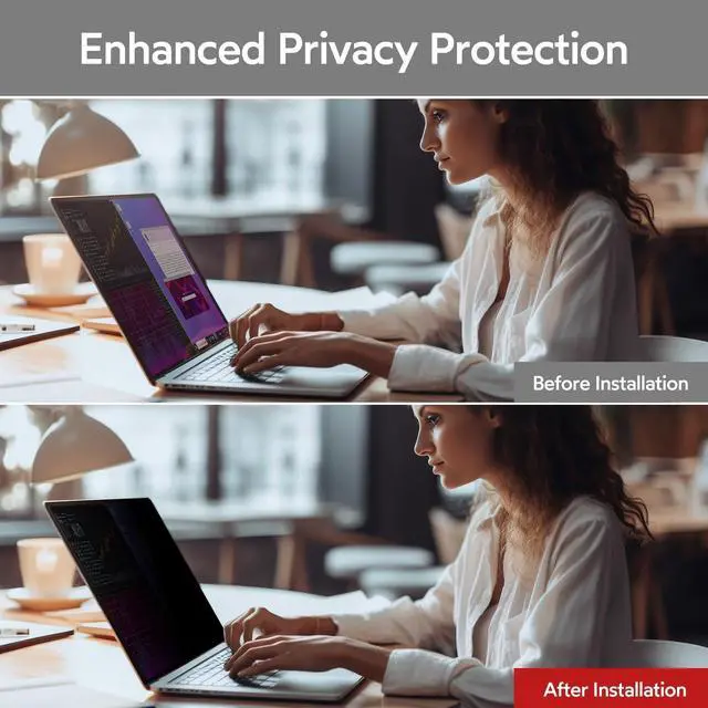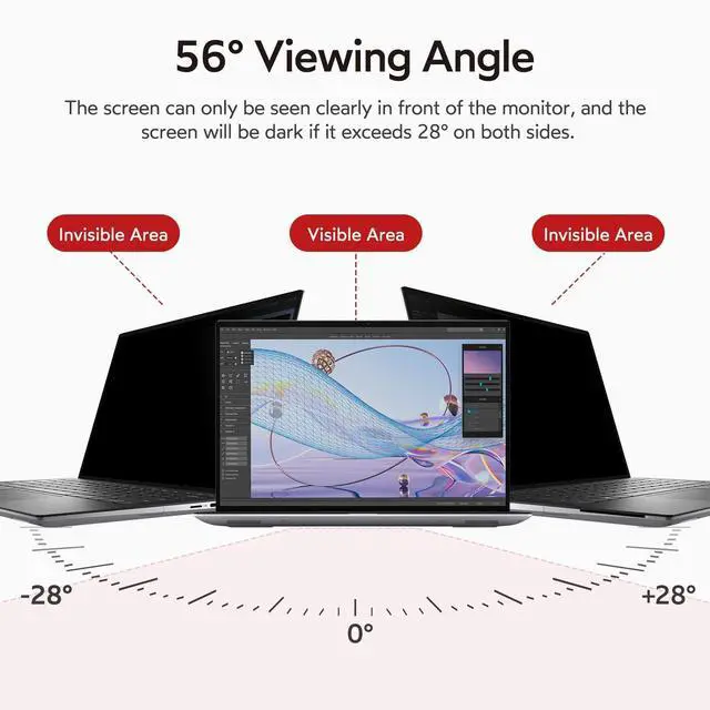Enhanced Privacy Protection: After installing laptop screen privacy shield, the screen content can only be seen clearly in front of the monitor. When the left and right angles exceed 28, the screen will become very dark, so there is no need to worry about the content on the screen being spied on by the surrounding people. The screen will dim a bit when using this protector, just turn up the monitor brightness ^^
