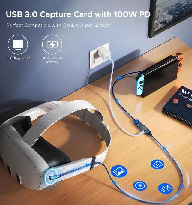 [Exclusively Design] The L-shaped USB-C connector fits perfectly with Quest and iPad, while the extended cable design allows quick access to the connection port without removing the headset. Elevate your content with the WARRKY capture card through 4K@30fps input and 1080P@60fps recording. The YUY2 format delivers richer colors than MJPEG, eliminating banding with vibrant gradients for true-to-life streaming. ^^ [100W High Speed Charging] Engineered for uninterrupted creativity, this capture card unleashes 100W ultra-fast charging through PD 3.0 technology - simultaneously powering your Quest 3 and iPad while capturing gameplay or live streams. Never let a low battery interrupt your winning streak: the intelligent power management sustains stable voltage even during graphic-intensive VR battles or multi-hour broadcasts. ^^ [Engineered for Excellence] The WARRKY capture card redefines reliability with aerospace-grade aluminum housing and braided nylon cabling, housing the flagship MS2130 chipset that achieves industry-leading 0.05 s transmission latency. Precision-machined aluminum alloy dissipates heat 40% faster than plastic shells, maintaining stability during VR marathons, while triple-shielded nylon cables resist tangling across mobile studio setups. ^^ [Universal Compatibility] The capture card is compatible with Switch, PS5/4, cameras, laptops, and tablets. It supports a wide range of capture software and platforms like HDMI Link, MoniCon, OBS Studio, QuickTime, and YouTube, and works with Windows 7/8/ 8.1 /10, MacOS, Linux, Android, and iPadOS 17+. Enjoy seamless integration and exceptional performance across almost all your devices. ^^ [WARRKY] We are committed to delivering exceptional quality products that combine sophisticated design with affordable pricing, offering you the best solutions for seamlessly connecting your work and life. If you have any issues, please reach out to us at your convenience. Your satisfaction is our top priority.