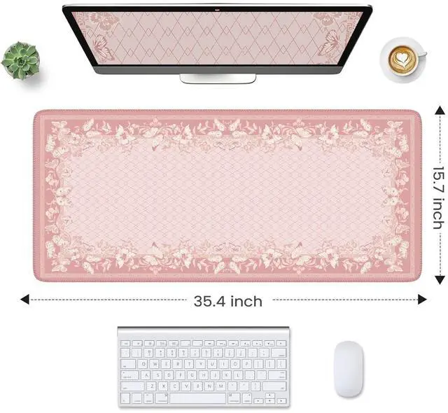 Coverage: The size of the desk mat is: 35.4"L x 15.7"W, which can accommodate a keyboard, mouse and monitor, suitable for large desktops. The mouse can slide anywhere without worrying about exceeding the boundaries. The desk mat is printed with high resolution, clear and colorful, adding visual beauty to the workspace ^^ Provide Strong Traction for