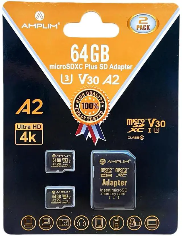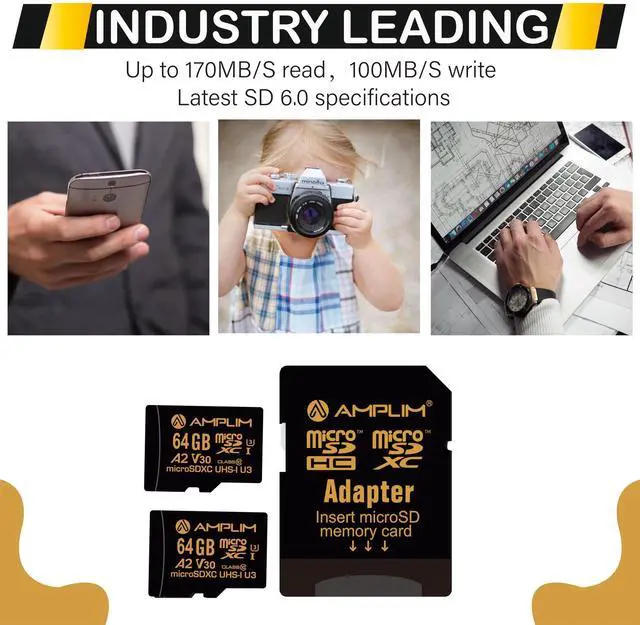 At Amplim, we want you to take more pictures, play more games, work more productive, and store more memories. Whether youre on the trail, on the road, in the office or at home, our versatile Amplim SDXC flash memory card is there for you. The Slim Secure Digital slot adaptor bundle allows you to convert the micro SD card to an SD card for a wide variety of uses. The microSD card works with USB 3.0 /USB3 card reader or thumb drive. Our cards are compatible with any device that requires a Micro SD SDXCcameras, smartphones, e-book readers, drones, or any laptop or computer accessories with a microSD or SD card slot including Kindle, Microsoft Surface, Mavic, DSI, Garmin, Nintendo Switch, DJI, Wyze cam, and others.